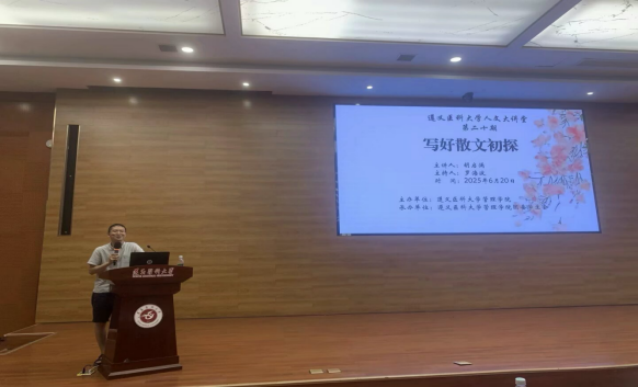 为深化公司员工对散文创作的认知,提升文学审美与写作能力,推动校园文化建设与人文素养培育,2025年6月20日304永利集团登录入口于道德讲堂举办“人文大讲堂”第二十期(2025年第4期)活动《草木日月皆文章——写好散文初探》。本次讲座特邀中国作家协会会员、贵州省文史馆特约文史研究员胡启涌主讲,304永利集团登录入口罗海波老师主持。公司党委副书记、董事长龚其海亲临参加本次讲座。